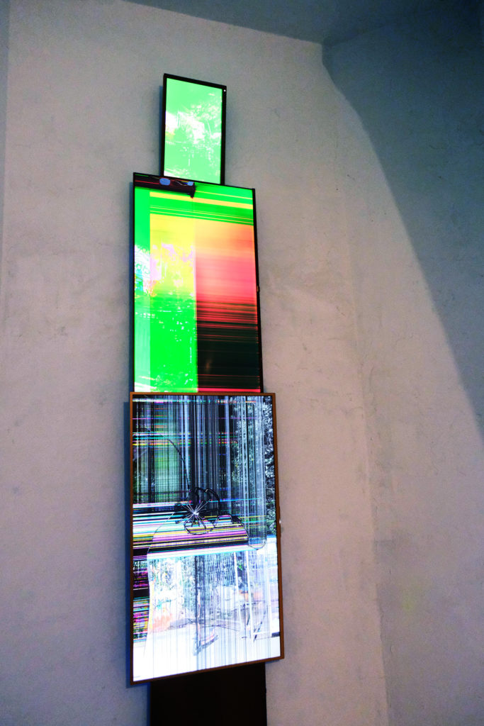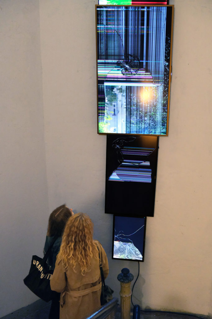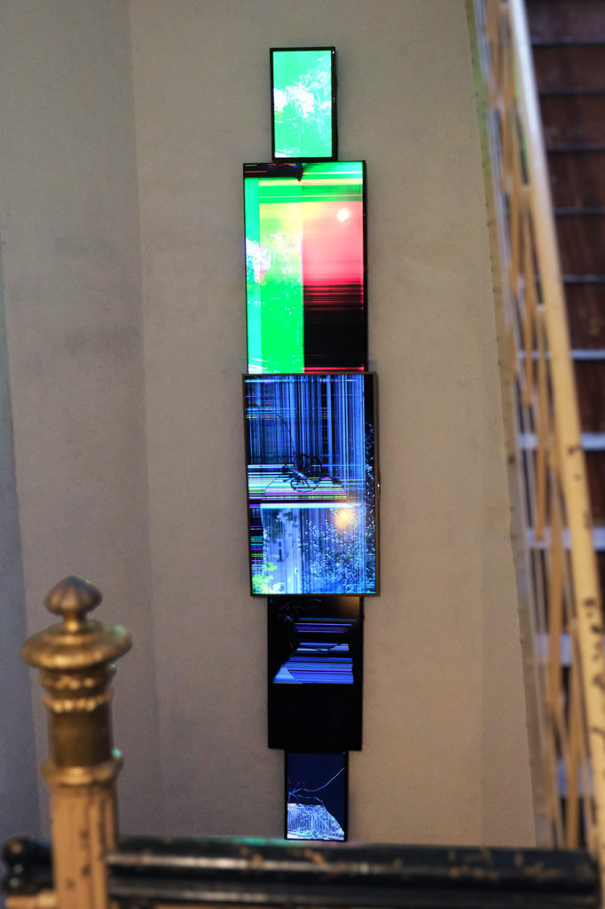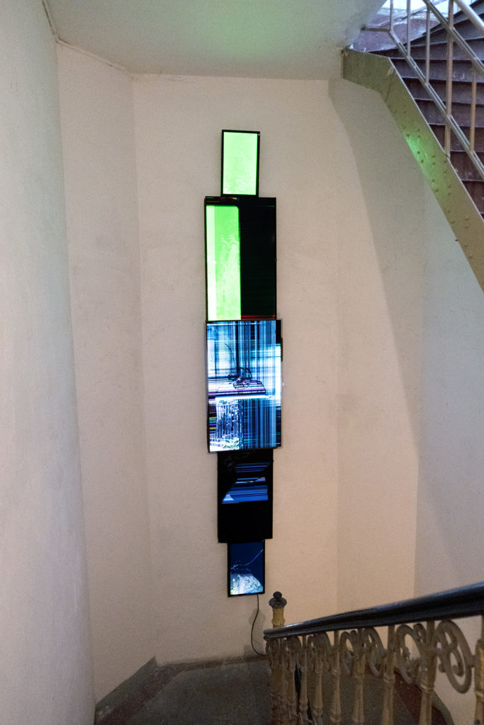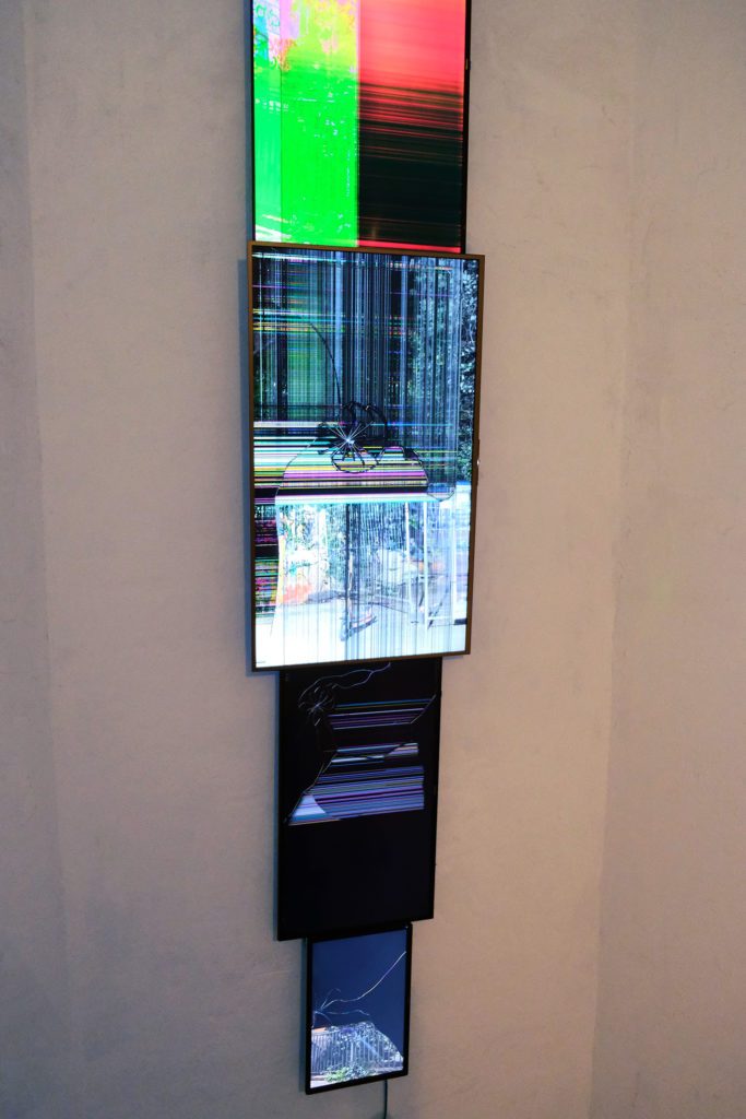 Fünf-Kanal-Videoinstallation, fünf kaputte Bildschirme, FHD Video, im Loop, kein Ton